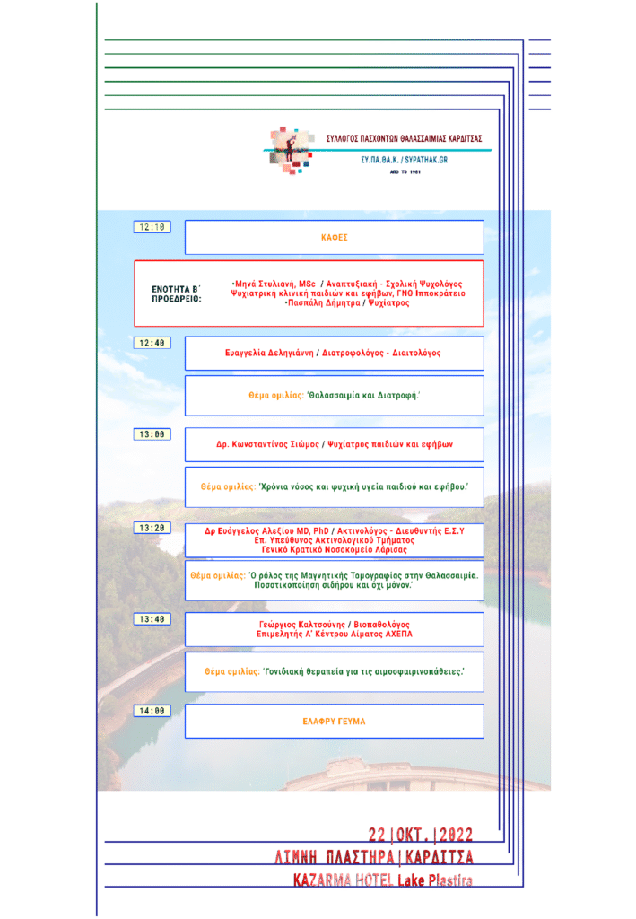 ΗΜΕΡΙΔΑ ΓΙΑ ΤΗ ΘΑΛΑΣΣΑΙΜΙΑ ΚΑΙ ΤΗ ΔΡΕΠΑΝΟΚΥΤΤΑΡΙΚΗ ΝΟΣΟ